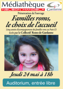 Le Collectif Roms de Gardanne vous invite à la présentation du livre » Familles Roms : le choix de l’accueil » le jeudi 24 mai à 18h à la Médiathèque de Gardanne. Ce livre est le récit de cinq années d’accompagnement vers l’autonomie économique et sociale de familles Roms; les difficultés rencontrées, des forces et faiblesses, réussites et échecs, et des interrogations auxquelles le Collectif n’a pas toujours (ou toujours pas) de réponse.